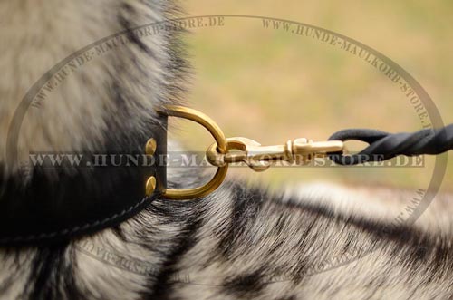 ist mit Metallteilen aus Messing ausgerüstet. An dem Halsband