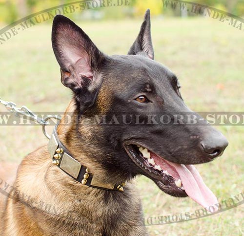 Malinois Halsband aus Bestem Leder mit Feinen Messingplatten und Nickelnieten