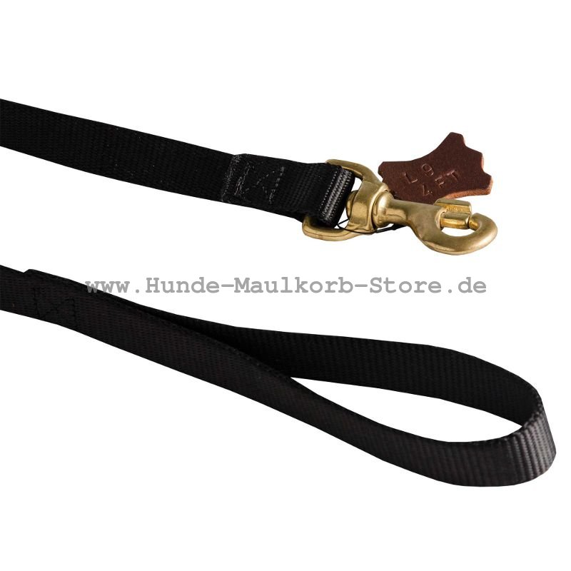 Sie haben sich entschieden eine neue Leine für Ihren Hund zu kaufen? Schenken Sie einen Augenblick Ihrer Zeit und besichtigen Sie unseren neuen Vorschlag auf dieser Seite. Wir präsentieren Ihnen eine hochqualitative Leine, die in schwarze Farbe aus erstklassigem Nylon angefertigt wird. Diese Leine wurde speziell für täglich und professionelle Benutzung entwickelt. Unsere Nylonleine besteht aus zwei Schichten Nylon, die fest zusammen geklebt und genäht sind. Die Leine kann unter jedem Wetter verwendet werden, da der Nylon Stoff schnell trocknet und die Form behält. Die Handschlaufe von der Leine liegt perfekt in der Hand und schenkt Ihnen eine ausgezeichnete Kontrolle.