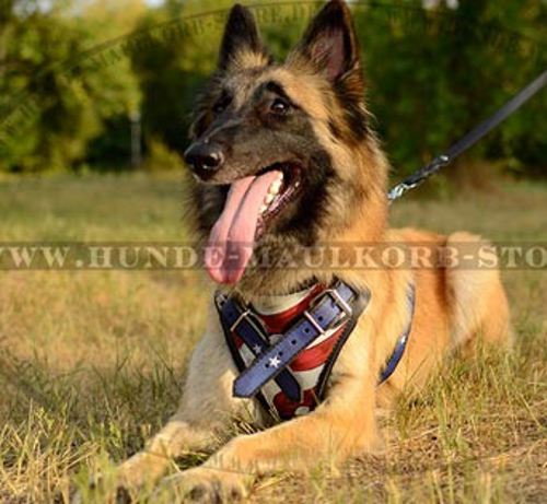 Artikelnummer: H1AP#1055 Hundegeschirr Leder mit Muster fuer Tervueren